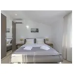 Villa Romi M med 3 sovrum, som har uteplats och balkong, erbjuder strykutrustning, strykjärn med strykbräda och luftkonditionering samt mediautrustning som Wi-Fi och satellit-TV. I badrummet finns även en separat toalett och en dusch. Badlakan och handdukar säkerställer också din bekvämlighet.